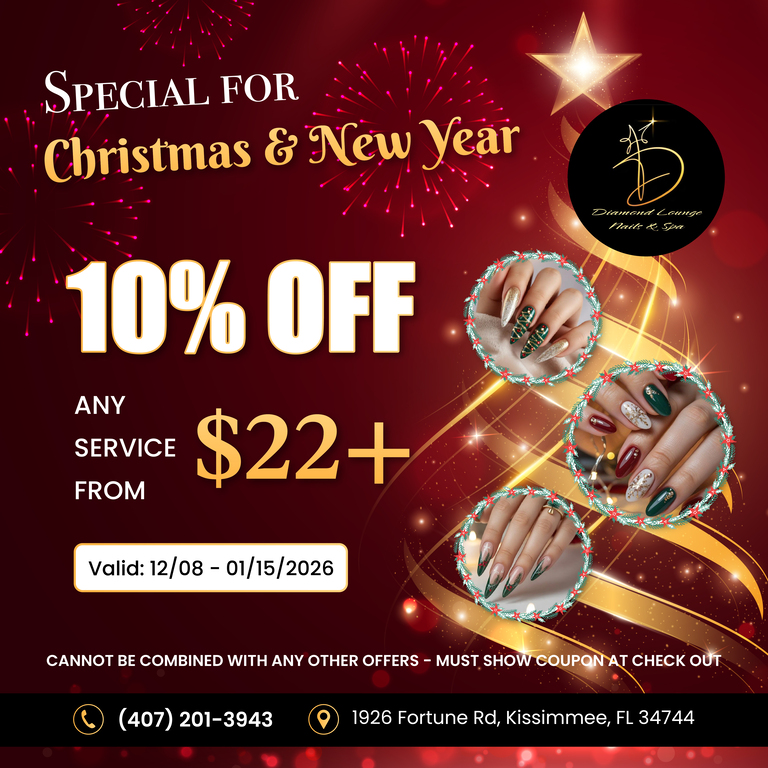 Welcome to Diamond Lounge Nails & Spa. Located at a beautiful place in Kissimmee, FL 34744, Diamond Lounge Nails & Spa offers the ultimate in pampering and restoring your beauty with our whole-hearted, careful & professional staff. Comprehending customer is not an easy task. It’s even harder when it comes to nail art & caring services.